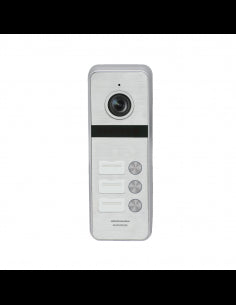 Video botonera de 3 botones con panel de aleaci¢n de aluminio. Es una soluci¢n de audio y video multidepartamental. Permite comunicaci¢n interna entre unidades internas. Tiene visi¢n nocturna y protecci¢n IP65.